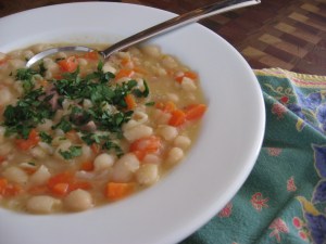 Ok, winter is officially here. I looked at the thermometer this morning to see -10 degrees…..Brrrrr! But the sun is shining and its a great day to stoke the wood stove and make a pot of Cannellini Bean Soup. Here at Brickyard Farms, we grow an assortment of dried beans. The flavor is so much better than with canned, and they can be ready in short order with the use of a pressure cooker. Cannellini beans, also known as white kidney beans, are among my favorite dried beans with their creamy texture and rich flavor. They marry easily with many ingredients and compliment recipes for dips, sides, stews and soups.