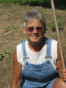 Our neighbor Lynne Serfling or ‘Lynner’ as we so often call her, is our go-to person when we are at market.  She makes sure that things are watered and the dogs let out when we are away.  She loves the farm and helps out on occasion when needed.  When she asked if I would till a piece of land behind her garage this spring I was surprised and asked what she wanted to grow.  She said that she had been giving it some thought through the winter.  She wanted to grow her own sweet corn and winter squash.  When we decided not to grow winter squash because of the glut at the market she said there was no reason we should be without squash!   Lynner’s family had always had a large garden.  It was an important part of their food budget.  Times were hard when she was a child and she remembers planting, weeding and harvesting many kinds of vegetables with her father and siblings.  “We grew a garden out of necessity back then, but working the land gets into your skin.  Plus I can’t let you have all the fun!”  She selected a sweet corn variety called Bodacious, along with Blue Kuri, butternut and acorn squash.  When she came home from work the other night, she called and left an excited and tearful message on our phone.  “I know it’s late, but I had to call and tell you MY CORN IS UP!  It hasn’t even been a week and it’s up!”  Then, while weeding her garden the other day she had an epiphany.  She had realized she had always worked on someone else’s garden or land and had never had her own land to work.  Now, as she stewards her own plot, she gives thanks for the healing quality of this pursuit.