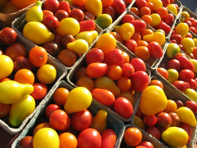So here we were packing up with a glut of cherry tomatoes and no customers.  We dismantled our stall and by the time we folded up our tarp we were soaked to the skin.  Unpredictable weather keeps following us around like a bad penny.  Undeterred, we drove home chatting about what to do with all the cherries.  We decided to freeze most of them, then vacuum seal them for winter.  That way we could make pasta sauces, roast them as a side dish or add them to other recipes.  I filled gallon zip lock bags with cherries and stacked them on a jelly-roll pan to place in the freezer.  Once frozen I would bag them in 4 cup pouches for later use.  I saved two pints to make a pasta sauce of roasted cherry tomatoes, fresh basil, parsley and goat cheese.  It rained for much of the day on Sunday which allowed us to pickle beets, dehydrate apricots, freeze cherries and enjoy a nice dinner together.  We ended up thanking the rain gods after all.