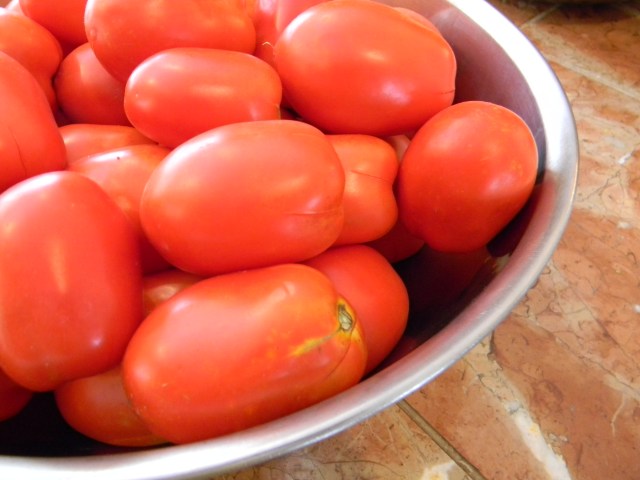 Tomatoes, tomatoes, tomatoes!  Do I sound redundant?  We are picking, sorting, eating and breathing tomatoes!  We see tomatoes in our sleep.  It’s been wicked busy here at the farm.  I’ve been going to market on Wednesdays and Fridays by myself, while Val stays at the farm picking more tomatoes.  Saturday we go together as it’s non stop at market…one selling, one stocking.  You would think we would have our fill by the end of the week, but not on your life.  Now it’s time to put up the larder!