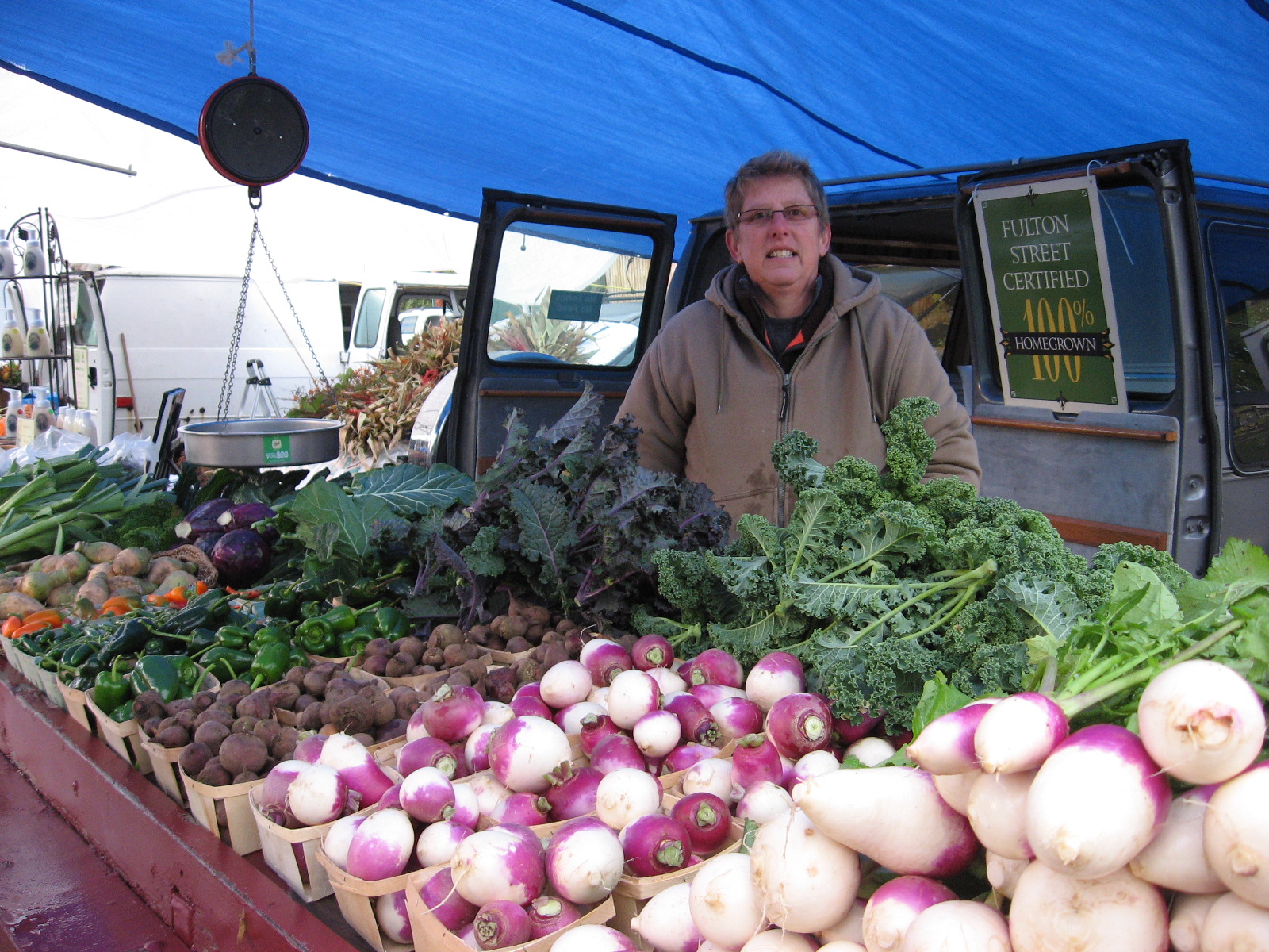 Our 2011 market season has ended and I’m feeling nostalgic. This week the Fulton Street Farmer’s Market will end as we know it and the work will begin on it’s all new and much-needed renovation. So why am I so sad? I know we will love pulling up to a market stall that is permanently covered. No more tarps dripping on us and our customers, or shredding in high winds. Nobody would deny that this is an improvement. But am I crazy to have actually liked putting up our tarp? I remember the first time I came to market by myself, so early no one would see me fumbling with the darn thing; and my sense of satisfaction when I got it up and secure.