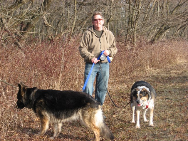 By going out on Pierce Cedar’s hiking trails 3 times a week we hope to be in shape to start our farm season in April.  Our two dogs Ella and Bleu know when I get Bleu’s harness out that we’re going for a hike.  Bleu can hardly contain himself.
